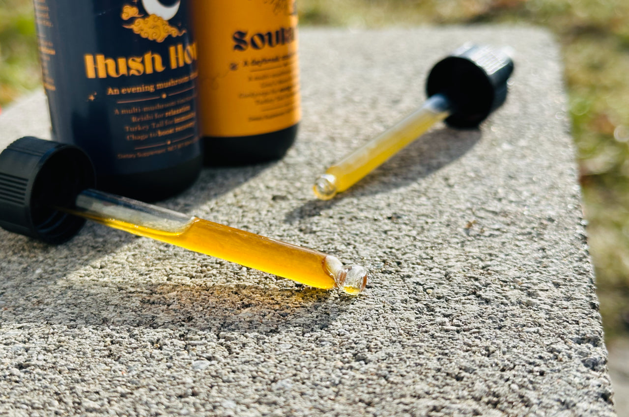 We don't use any pesticides or chemicals in the growth of our mushrooms, and our extracts are made with three ingredients: water, food-grade organic cane sugar ethanol, and dried mushrooms!