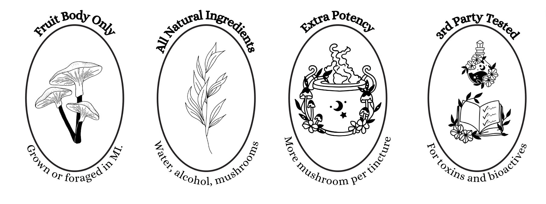 No fillers or myceliated grains here! We only use mushroom fruit bodies in our extracts, most of which we grow in our vertically integrated farm. In rare situations, we source from other US based farms or from licensed foragers in the wonderful state of Michigan.